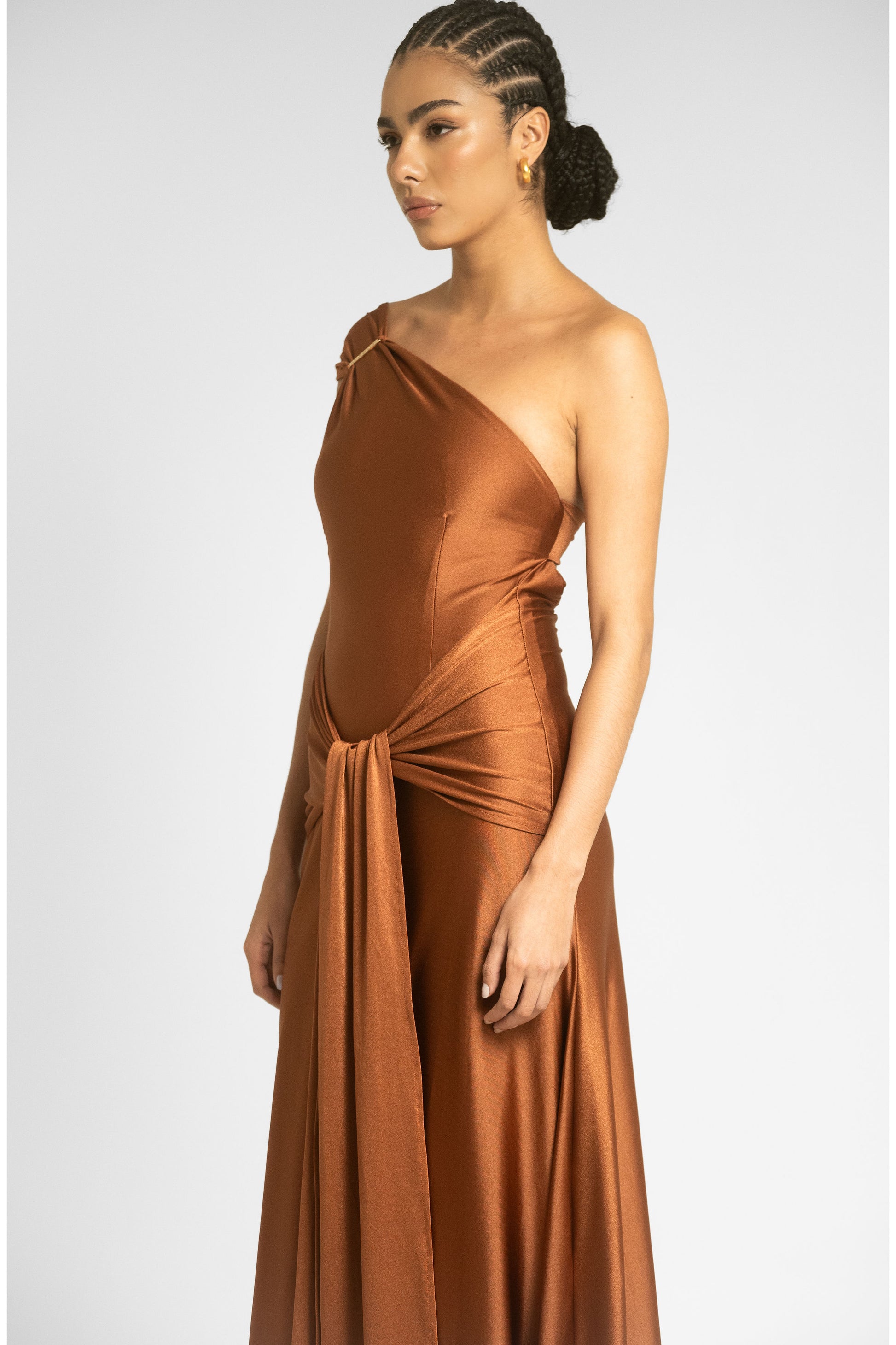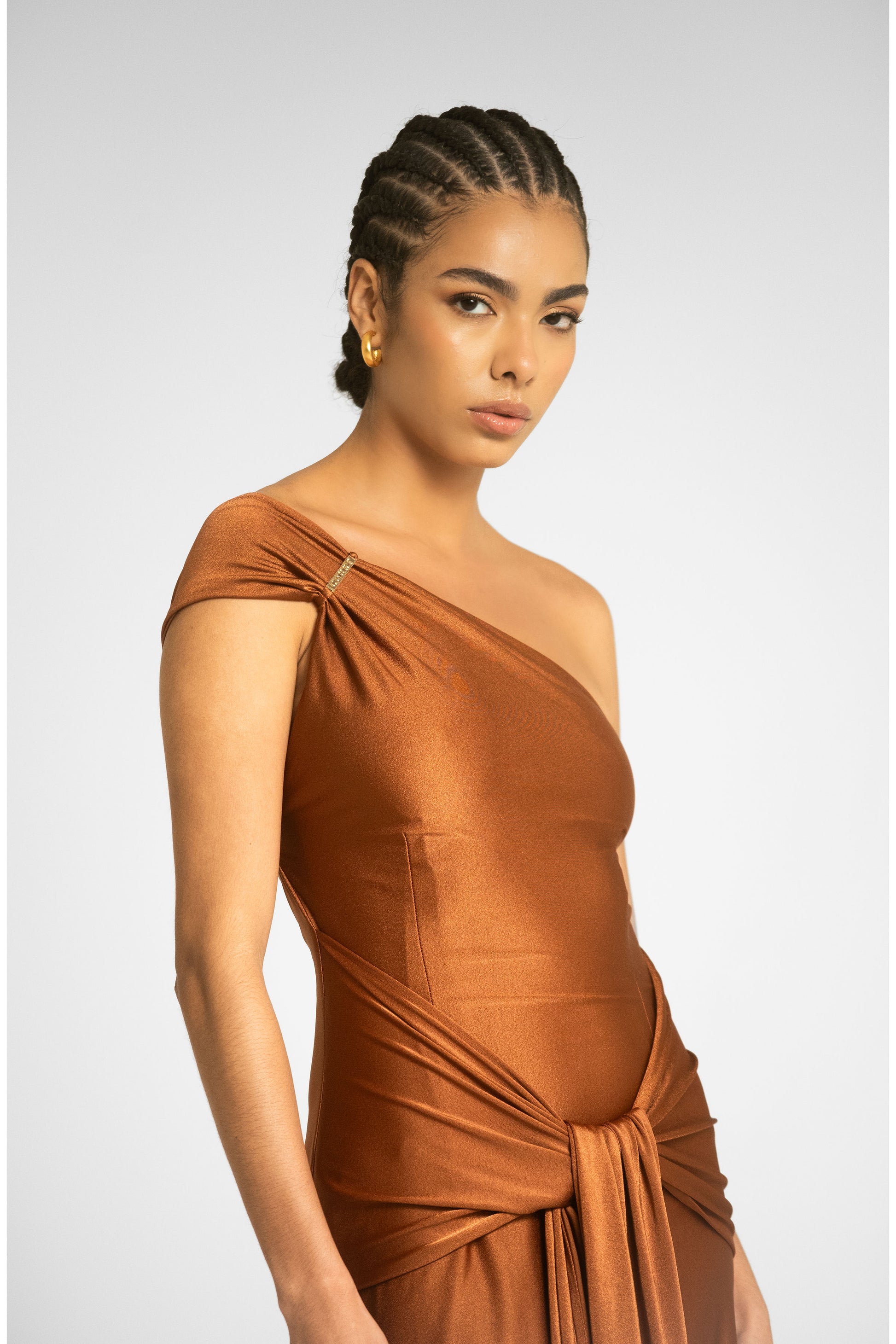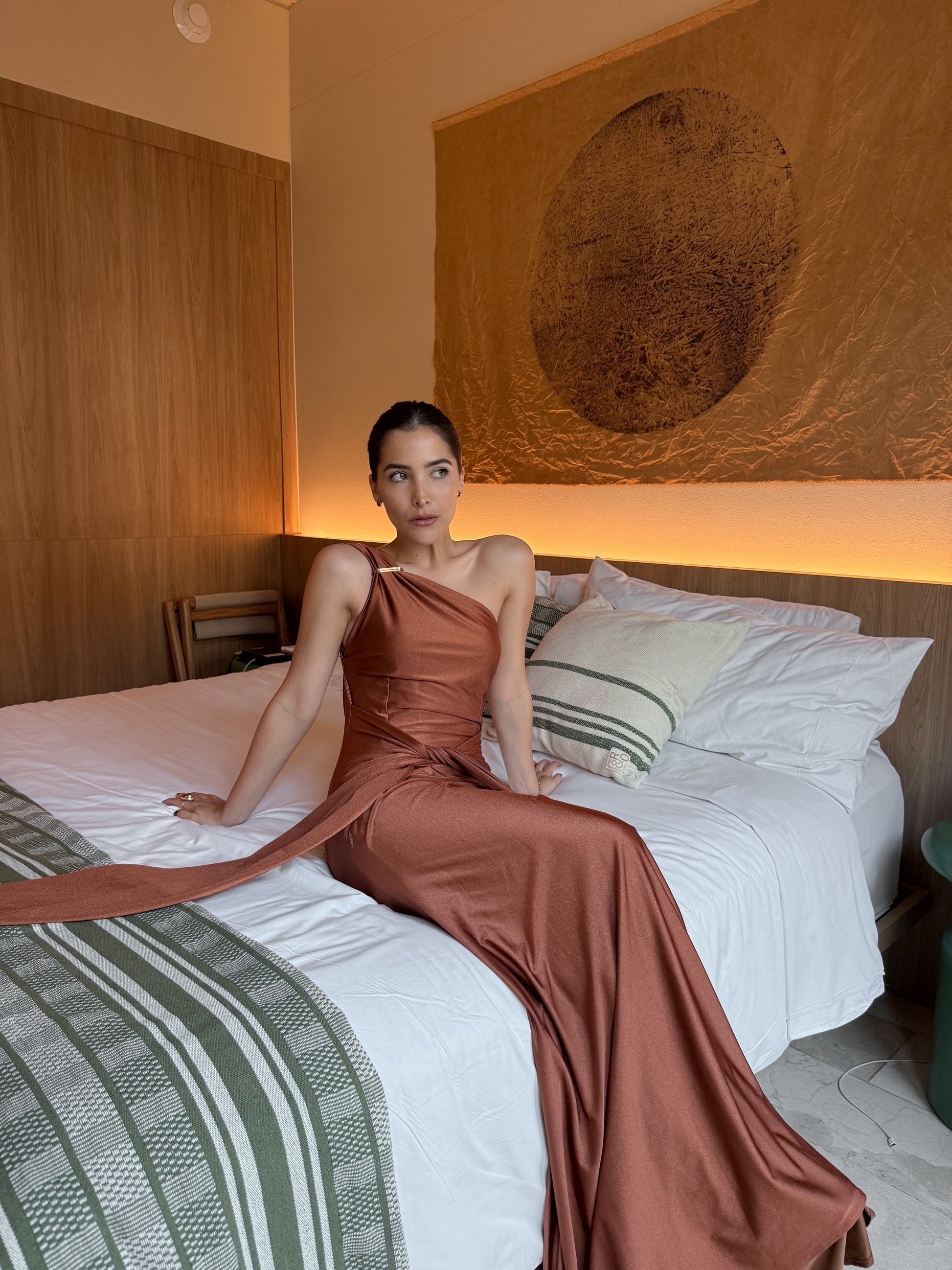 Su versatilidad te permite personalizarlo a tu gusto: los lazos en la cintura puedes usarlos hacia adelante o hacia atrás, y el hombro puedes llevarlo caído o recogido.